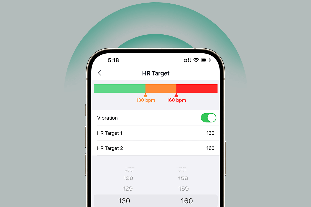 HR Target lets you set heart-rate thresholds. VisualBeat can vibrate to help you stay in the right zone. You can also turn vibration alerts on or off anytime in the app.