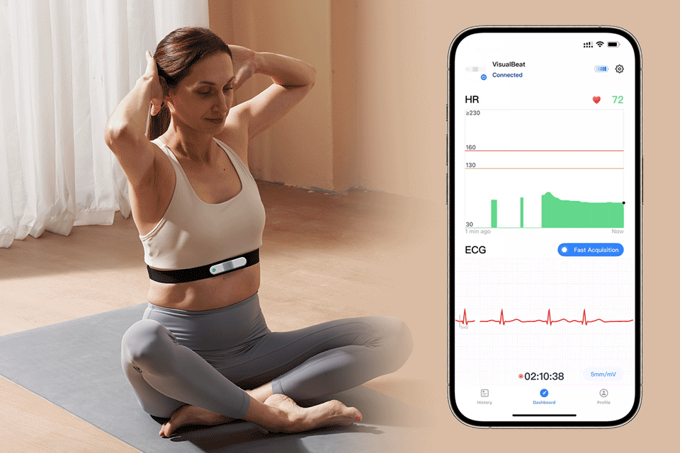 VisualBeat™ uses chest-based electrical sensing, the gold standard for heart rate tracking, to capture each beat accurately. It can monitor your heart rate continuously for up to 24 hours, so you can see how your heart responds to everyday life, training and recovery across a full day.