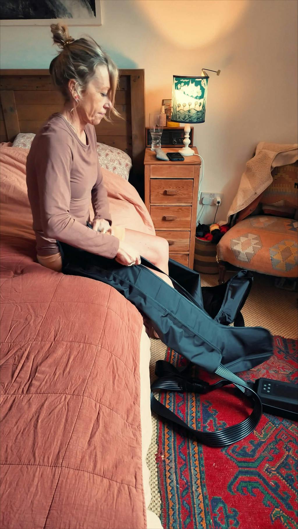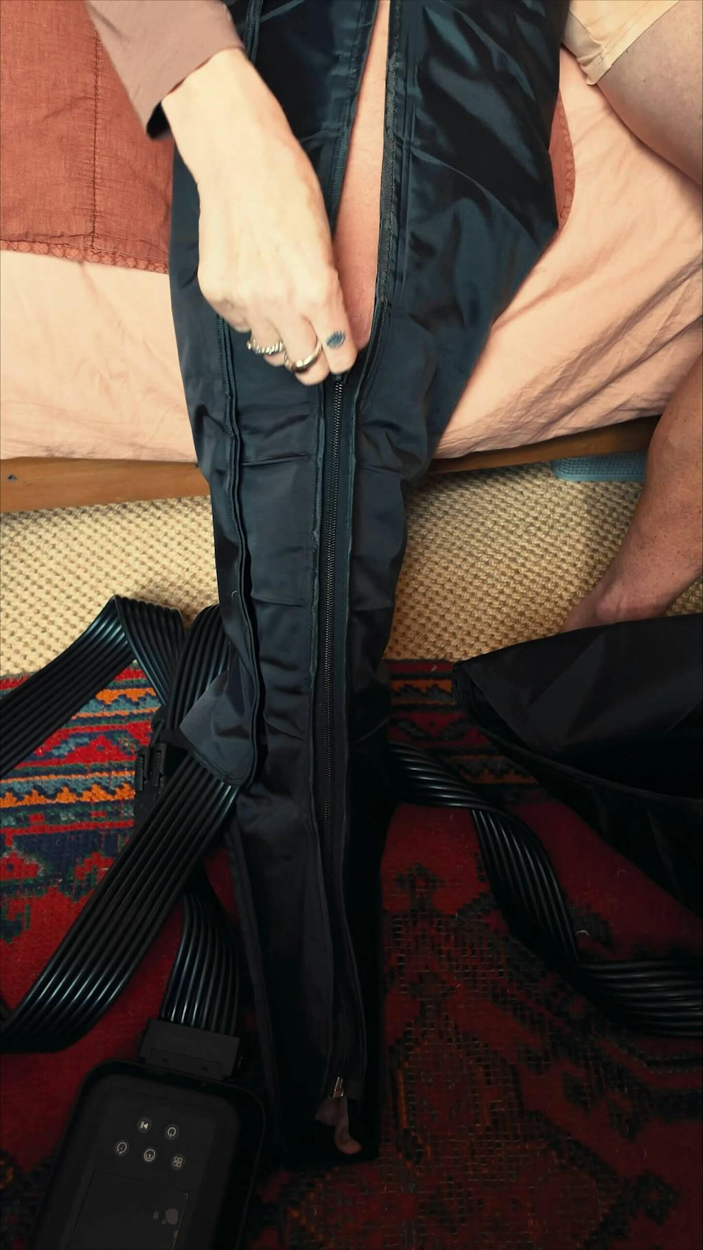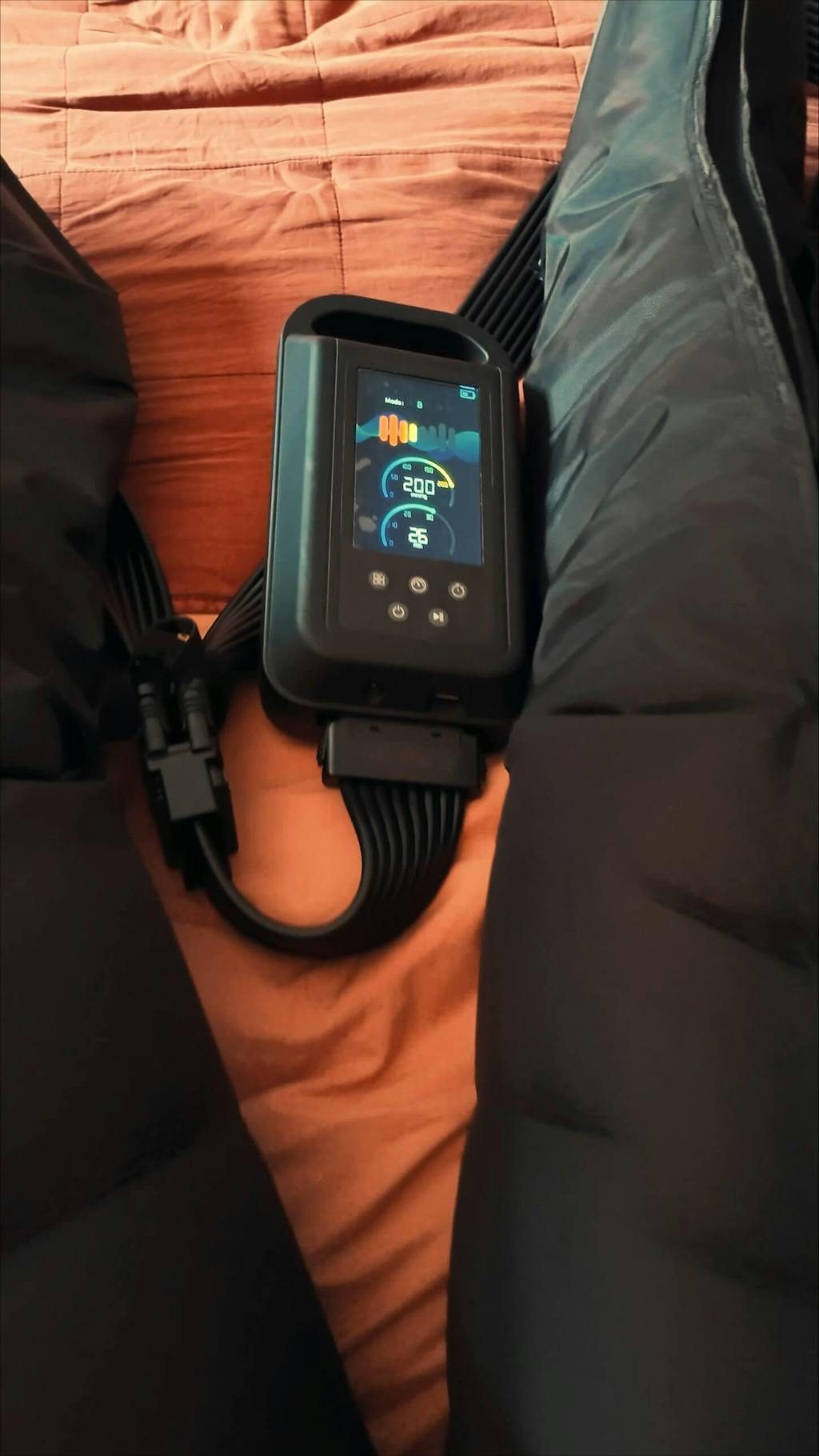 Inflate and deflate air chambers from feet to thighs. This creates a massaging effect that mimics the natural muscle pump action during physical activity.